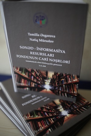 1. Əsgərova, T., Mürsəlov N.. Sənəd-informasiya resursları fondunun cari nəşrləri : annotasiyalı elmi-biblioqrafik göstərici. Cild 1 / Tamilla Əsgərova, Natiq Müsəlov; elmi red. : G.Əliyeva-Kəngərli ; rəy. : K.Tahirov, A.Babayev ; Azərbaycan Dövlət Mədəniyyət və İncəsənət Universiteti. - Bakı : ADMİU, 2020. - 160 s. Azərbaycanın ali məktəb kitabxanaları içərisində ilk dəfə olaraq tərtib olunan bu fundamental elmi-biblioqrafik resursda 2019-cu ildə ADMİU-nun Kitabxana-informasiya Mərkəzinin fonduna Azərbaycan və xarici dillərdə yeni daxil olan nəşrlər (kitab, magistr dissertasiyası və jurnallar) haqqında analitik məlumatlar verilib. Kitaba daxil edilən nəşrlər Universal Onluq Təsnifat (UOT) cədvəllərinə uyğun olaraq elm sahələri üzrə sistemləşdirilib. Biblioqrafik mənbədən səmərəli və operativ istifadəni təmin etmək məqsədilə sənəd-informasiya resursları müəlliflərin və ya sərlövhələrin əlifba sırası, eləcə də, fondda yerləşdiyi şifrələri ilə birlikdə verilib.