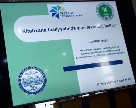 12 may 2022-ci il tarixində Bakı Dövlət Universitetinin (BDU) Elmi Kitabxanasının təşkilatçılığı ilə Azərbaycan Kitabxana İnformasiya Konsorsiumu (Az.KİK) çərçivəsində “Kitabxana fəaliyyətində yeni texnoloji həllər” mövzusunda dəyirmi masa keçirilib.