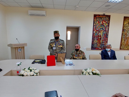 Qonaqları salamlayan ADMİU-nun rektoru, professor Ceyran Mahmudova universitetin hərbi-vətənpərvərlik sahəsində gördüyü işlərdən, keçirdiyi layihələrdən danışıb. Bu müddət ərzində ADMİU-nun professor-müəllim heyətinin, eyni zamanda, tələbələrinin bu işdə çox fəal şəkildə çalışdıqlarını deyən rektor onların təkcə universitet daxilində deyil, universitet xaricində də hər zaman ictimai-mədəni işlərdə aktiv iştirak etdiklərini bildirib. Universitetdə açılan Qarabağ sərgisindən, keçirilən vətənpərvəlik mövzulu tədbirlərdən söz açan C.Mahmudova qeyd edib ki, ADMİU-nun Vətən müharibəsində iştirak edən döyüşçüləri və şəhidlərinin şərəfinə “Zəfər” lövhəsi də hazırlanıb ki, bunu da ali təhsil ocağının müəllim və tələbələri ərsəyə gətiriblər.
