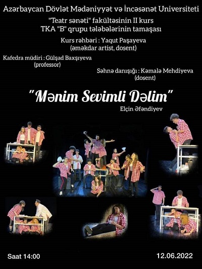 İyunun 12-də Lənkəran Dövlət Dram Teatrının səhnəsində Azərbaycan Dövlət Mədəniyyət və İncəsənət Universitetinin (ADMİU) "Teatr sənəti" fakültəsinin II kurs TKA "B" qrupu tələbələrinin ifasında Xalq yazıçısı Elçin Əfəndiyevin "Mənim sevimli dəlim" tamaşası nümayiş etdirilib.