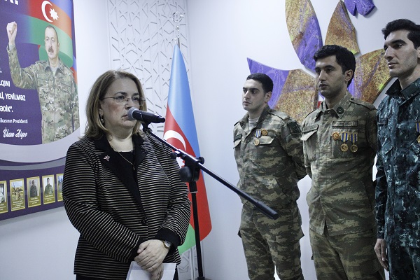 Rektor 44 günlük Vətən müharibəsində ADMİU-nun da 50-dən çox tələbə, məzun və əməkdaşının iştirak etdiyini, onlardan 3-nün şəhidlik zirvəsinə yüksəldiyini xatırladıb və bildirib ki, universitet olaraq həm şəhidlərimizin ailələri, həm də qazilərimiz və müharibə iştirakçılarımız hər zaman diqqətimizdədir. Onların gələcək nəsillərə qəhrəmanlıq nümunəsi olduğunu qeyd edən C.Mahmudova məhz bu cür igidlərimiz sayəsində zəfərimizin əbədi olacağına inandığını bildirib.