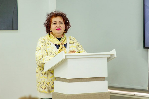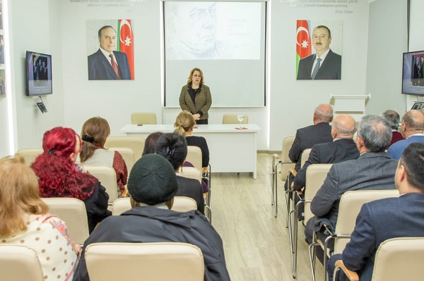 Daha sonra Bakı Dövlət Universitetinin Qafqaz xalqları tarixi kafedrasının müdiri, Əməkdar müəllim, tarix elmləri doktoru professor İradə Hüseynova Heydər Əliyev dühasıyla bağlı xatirələrini bölüşüb, onun həyatı, siyasi irsi haqqında geniş məruzəylə çıxış edib.
