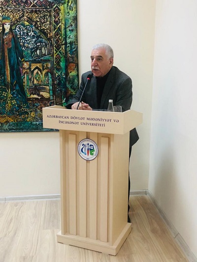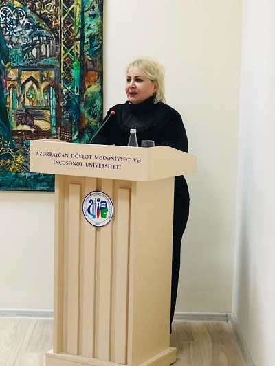 ADMİU-nun Ədəbiyyat və dillər kafedrasının müdiri, professor Fəridə Səfiyeva “Zülmə qarşı üsyankaram, əzilsəm də susmaram” mövzusunda məruzə edib.