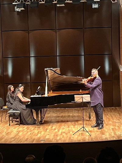 ADMİU-nun Musiqi sənəti fakültəsinin İnstrumrntal ifaçılıq kafedrasının gənc və istedadlı müəllimləri, kafedranın baş müəllimi, pianoçu Leyla Əliyeva və viola ifaçısı, kafedranın müəllimi Üzeyir Mahmudbəylinin iştirakı ilə Beynəlxalq Muğam Mərkəzində keçirilən möhtəşəm konsert tamaşaçıların yaddaşında unudulmaz iz qoydu. Konsert proqramını görkəmli alman bəstəkarı Paul Hindemitin fortepiano və viola üçün yazdığı 4 №li sonatasının ifasına başlamazdan öncə Üzeyir Mahmudbəyli tamaşaçılara bəstəkarın dövrün kontrapuntal cəhətdən mürəkkəb bir üslubda yazdığı əsərləri daha sonra neoklassik əsərlərlə əvəz olunduğunu söylədi. Əslində bəstəkarın özünün o qədər də sevmədiyi bu əsəri ənnənəvi Motsart, Bethoven klassik aydınlığından daha çox İ.S.Baxın və M.Regerin kontrapuntal dili ilə yazılan və əsasən nəzəriyyəçilərin anlamında olan bir musiqi olduğu fikrini ifaçı Ü.Mahmudbəyli tamaçılarla bölüşdü. L.Əliyeva və Ü.Mahmudbəyli sonatanın melodiyasındakı əks nöqtəni, ritm və melodik konturda harmonik olaraq bir-birindən asılı, lakin müstəqil olan iki musiqi xəttini, bir sözlə P.Hindemit ideyasını tamaşaçılara öz ifaları ilə aydın şəkildə çatdırdılar.
