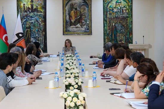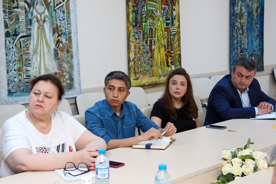 Görüşün davamında ADMİU-nun prorektorları Sədaqət Əliyeva, Nigar Rüstəmova və başqaları art menecment və onun tədrisi ilə bağlı öz fikirlərini bölüşüb, qonağa suallarını ünvanlayıblar.
