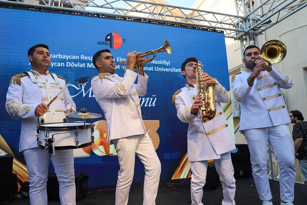 Bədii hissədə ADMİU-nun məzunu olmuş sənətçilər şən musiqi nömrələriylə çıxış ediblər.