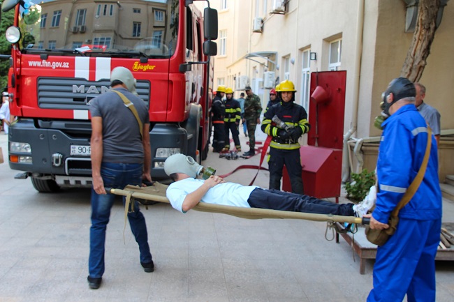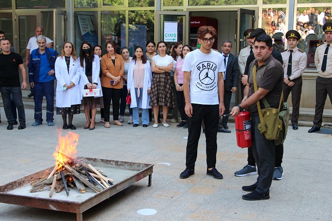 Daha sonra Yanğınsöndürən balondan praktiki istifadə qaydaları tədbir iştirakçılarına əyani formada çatdırılıb.