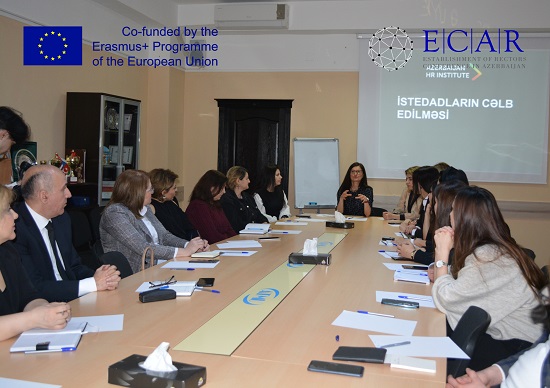 Azərbaycan HR İnstitutu tərəfindən həyata keçirilən tədris proqramında Azərbaycanın layihə tərəfdaşı olan 16 Ali təhsil müəssisəsindən 18 nəfər iştirak edir və məqsəd ali təhsil müəssisələrində insan resursları idarəedilməsinin təkmilləşdirilməsidir.