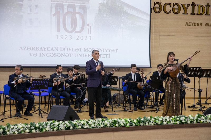 Tədbirdə çıxış edən Milli Məclisin Mədəniyyət Komitəsinin sədr müavini, millət vəkili Fazil Mustafa, Akademik Y.Məmmədəliyev adına Neft-Kimya Prosesləri İnstitutunun baş direktoru akademik Vaqif Abbasov Azərbaycanın ilk yaradıcı ali təhsil ocağı olan Mədəniyyət və İncəsənət Universitetini 100 yaşı münasibəti ilə təbrik edib, onun Azərbaycan incəsənətinin bir əsrlik tarixindəki mühüm və əvəzsiz rolundan danışıblar.