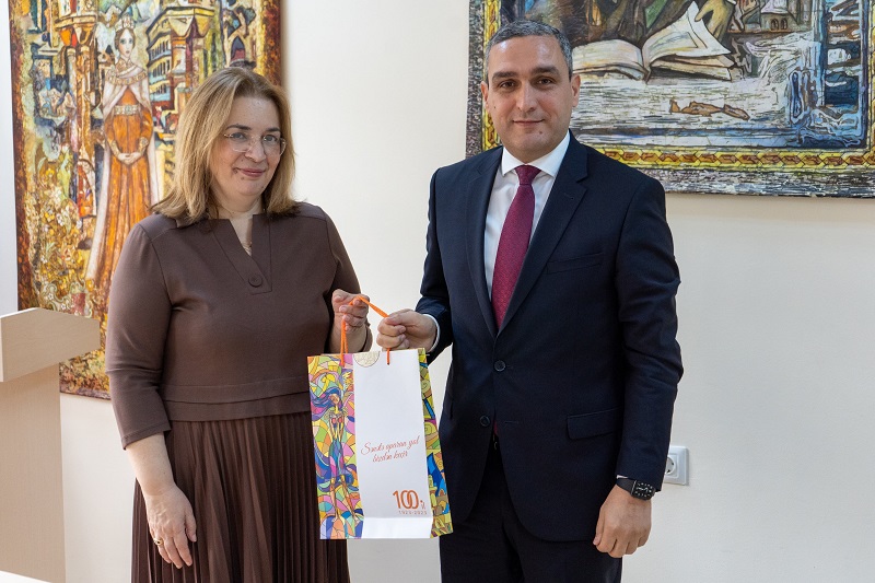 Sonda ADMİU-nun rektoru Ceyran Mahmudova həmkar qonaqlarına 100 illiklə bağlı hazırlanmış xüsusi xatirə hədiyyələri təqdim edib. O cümlədən, region universitetlərinin rektorları da öz növbələrində C.Mahmudovaya xatirə hədiyyələri veriblər.