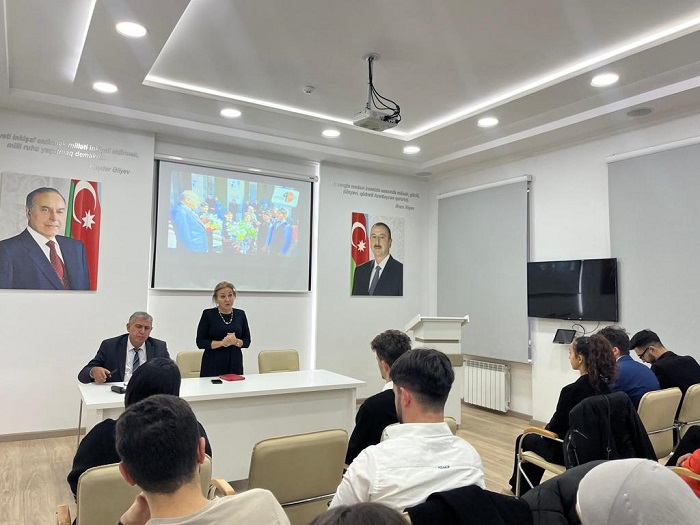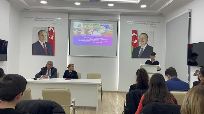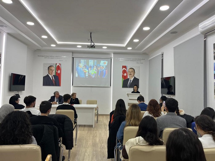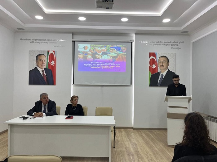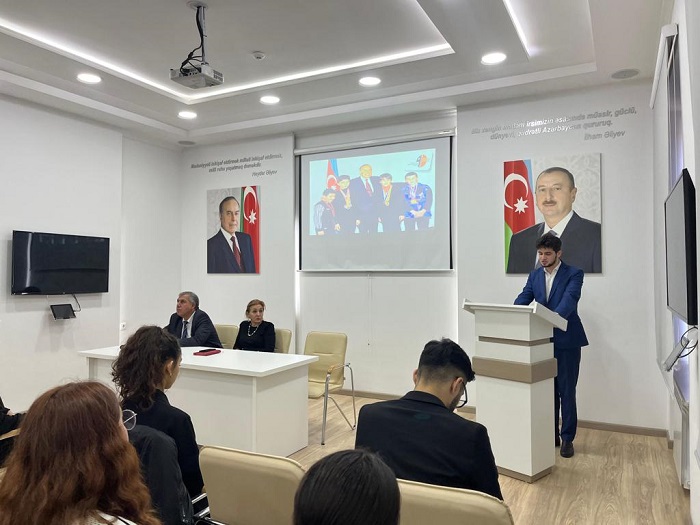 Daha sonra tələbələr Nəbi Vəliyev, Məleykə Süleymanova, İntizar Qasımzadə, Rəvan Mustafazadə və Əfsun Məmmədli “Heydər Əliyev və Həmrəylik günü”, “Heydər Əliyev və Dünya azərbaycanlıları”, “Heydər Əliyev və gənclik”, “İlham Əliyev və gənclik” mövzusunda məruzələrlə çıxış ediblər.