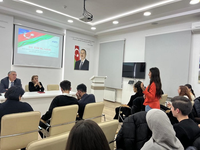 Dekabrın 25-də Azərbaycan Dövlət Mədəniyyət və İncəsənət Universitetinin (ADMİU) Heydər Əliyev məktəbində 31 dekabr - Dünya Azərbaycanlılarının Həmrəyliyi Günü münasibəti ilə tədbir keçirilib.