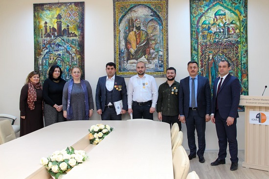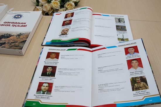 Tədbirdə çıxış edən ADMİU-nun rektoru professor Ceyran Mahmudova bildirib ki, Azərbaycan Təhsil İşçiləri Azad Həmkarlar İttifaqı tərəfindən çap olunan və ADMİU Kitabxana-İnformasiya Mərkəzinə hədiyyə olunan kitab Azərbaycan Həmkarlar İttifaqı Konfederasiyasının sədri, Milli Məclisin üzvü, iqtisad elmləri doktoru Səttar Möhbalıyevin rəhbərliyi ilə tərtib olunub. Kitabda Vətən müharibəsində iştirak edən 760 nəfər təhsil işçisi haqqında məlumat verilir ki, bunlardan da 3 nəfəri ADMİU-nun əməkdaşıdır. Bunlar, mütəxəssis kimi çalışan Əsgərli Tərlan, Həsənov Azər və Hüseynov Arifdir. Müharibə iştirakçısı olan cəsur döyüşçülərin tanıdılması məqsədilə nəşrdə onların igidliyi, vətənpərvərliyi və qələbə dolu döyüş yolu geniş şəkildə öz əksini tapıb.