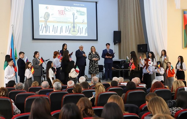 Daha sonra ADU-da fəaliyyət göstərən dil və mədəniyyət mərkəzləri adından müxtəlif xarici dillərdə ADMİU-nun 100 illiyi ilə bağlı təbriklər səsləndirilib.