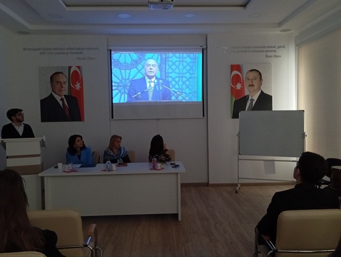 Tədbiri giriş sözü ilə açan ADMİU-nun Elm və yaradıcılıq işləri üzrə prorektoru, dosent Sədaqət Əliyeva Gənclər günü münasibəti ilə bütün tələbələri, gəncləri təbrik edərək bu günün tarixindən, önəmindən bəhs edib, bildirib ki, bu, Heydər Əliyevin gəncilyə göstərdiyi diqqət və qayğının bir nümunəsi idi. S.Əliyeva ADMİU-nun I Qarabağ və 44 günlük Vətən müharibələrində şəhid olmuş tələbələrini, məzunlarını xatırlayaraq bildirib ki, Azərbaycan gəncliyi hər zaman öz vətənpərvərliyi, cəsarəti ilə seçilib.