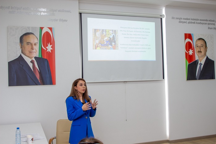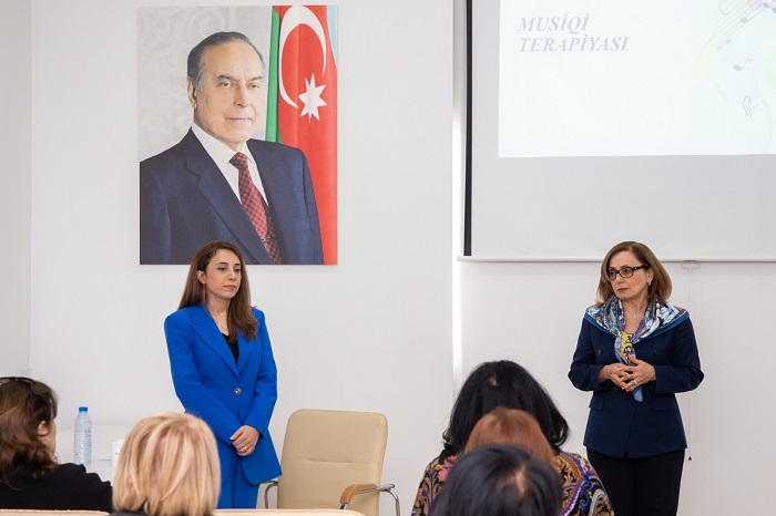 Məlumat xarakterli tədbirdə çıxış edən “Musiqi tarixi və nəzəriyyəsi” kafedrasının müdiri, professor Kamilə Dadaşzadə qeyd edib ki, bir neçə ay öncə ADMİU-da ilk dəfə musiqi, psixologiya və təbabətin vəhdətini əks etdirən “Musiqi Terapiyasına Giriş” adlı təlim kursu keçirilib. 6 həftə müddətində tədris edilən proqramın fundamental məqsədi təlim iştirakçılarına musiqi terapiyasının əsaslarını göstərmək, bu sahədə zəruri hesab edilən bilik və bacarıqları aşılamaq, o cümlədən, musiqinin somatik və psixi xəstəliklərdən əziyyət çəkənlərin müalicəsi və reabilitasiyasında mühüm vasitələrdən biri kimi tətbiq edilməsi yollarının təfərrüfatlarını izah etmək olub.