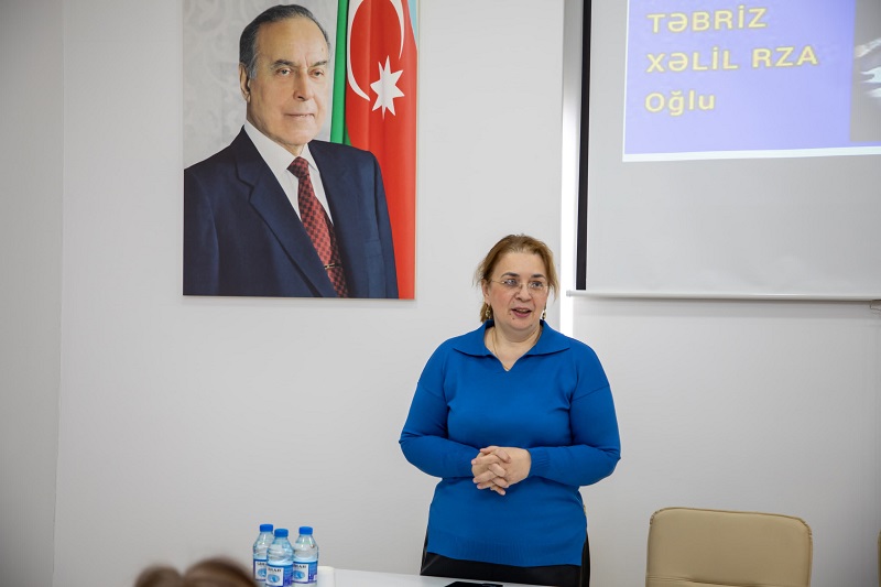 ADMİU-nun prorektoru, Təbriz Xəlilbəylinin tələbə yoldaşı Sədaqət Əliyeva çıxışında onunla xatirələrini bölüşüb, bir tələbə kimi, şəxsiyyət kimi yüksək xarakterik xüsusiyyətlərindən bəhs edib.
