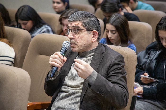 Tədbirin davamında Teatrşünaslıq kafedrasının müəllimi Emin Əliyevin moderatorluğu ilə "Britaniya dramaturgiyasında mənəvi konsept" mövzusunda müzakirə baş tutub. Bu hissədə iştirakçılar XXI əsrdə Böyük Britaniya dramaturgiyasında müşahidə olunan tendensiyalarla tanış olmaq imkanı əldə edib, eləcə də Əməkdar artist, dosent Yaqut Paşazadənin tələbə-aktyorlarla hazırladığı Fibi Uoller-Bricin "Flibəq" pyesinin oxunuşunu dinləyiblər. Oxunuşdan sonra teatr xadimlərinin, ADMİU-nun professor-müəllim heyətinin və tələbələrinin iştirakı ilə müzakirə davam edib.