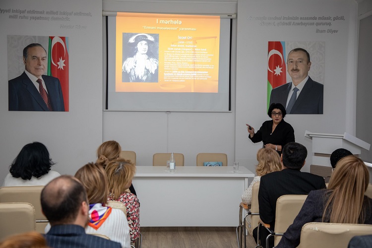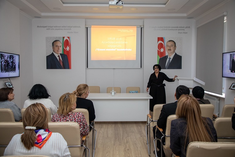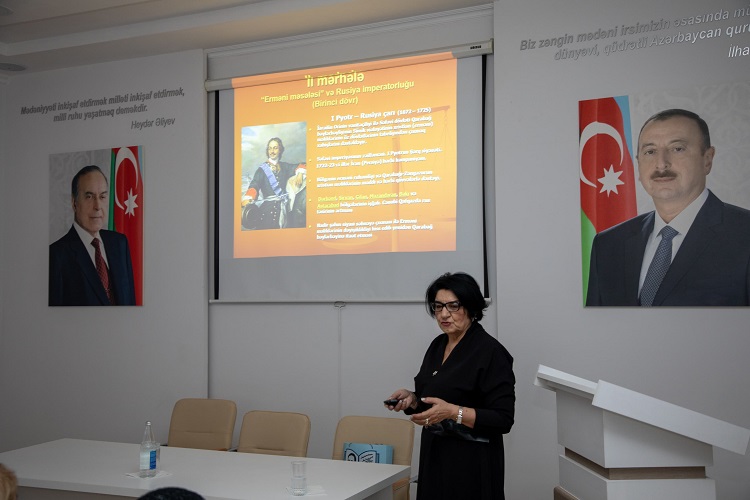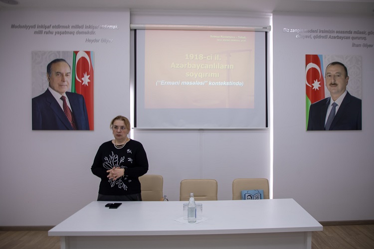 Tarix elmləri doktoru, professor Solmaz Rüstəmova-Tohidi “1918-ci il. Azərbaycanlıların soyqırımı (“Erməni məsələsi” kontekstində)” məruzəsi ilə çıxış edərək mövzu ilə bağlı fikirlərini və tarixi faktları bölüşüb. Erməni məsələsinin yaranma tarixindən başlayaraq, Rus çarı l Pyotrun zamanından ermənilərin Azərbaycan ərazilərinə köçürülməsi, eləcə də Azərbaycan xanlıqlar dövründə, Rusiya imperiyasında bu məsələnin durumu haqqında məlumat verən tarixçi alim məruzəsində 1905-1906-ci illər erməni-müsəlman münaqişəsi, 1918-ci il hadisələri və ondan sonrakı dövrün də geniş mənzərəsini yaradıb. Professor qeyd edib ki, həmin qanlı hadisələrin böyük tarixi anlamı və əhəmiyyəti var.