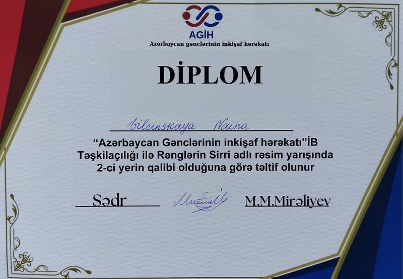 Tələbələr Fatimə Babazadə (1-ci yer), Vilçinskaya Naina (2-ci yer) və Zəhraxanım Kərimzadənin (3-cü yer) müəllimləri Elçin Cabarov və Zöhrab Cabbarovun rəhbərliyi altında yaratdıqları əsərlər 30 rəssamın əl işləri arasında fərqlənməyi bacarıb.
