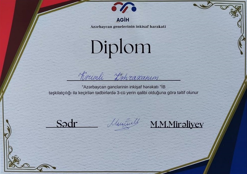ADMİU-nun Rəssamlıq fakültəsi Təsviri Sənət kafedrasının lll kurs Qrafika/Kitab tərtibatı və illüstrasiyası ixtisasının tələbələri “Azərbaycan gənclərinin inkişaf hərəkatı” İctimai Birliyinin təşkilatçılığı ilə keçirilən “Rənglərin Sirri” adlı sərgidə qalib olublar.