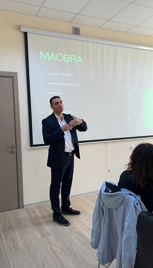 Təlimçi Vüsal Əzizov seminarda CV-nin düzgün qaydada hazırlanması, vakansiyaların analizi üzrə tövsiyələr, müraciət prosesində nəzərə alınmalı məqamlar, müsahibəyə hazırlığın görülməsi, müsahibə zamanı namizəddən gözləntilər, test tapşırığın hazırlanması, işə uğurlu başlanğıc məsələləri ilə bağlı danışıb.