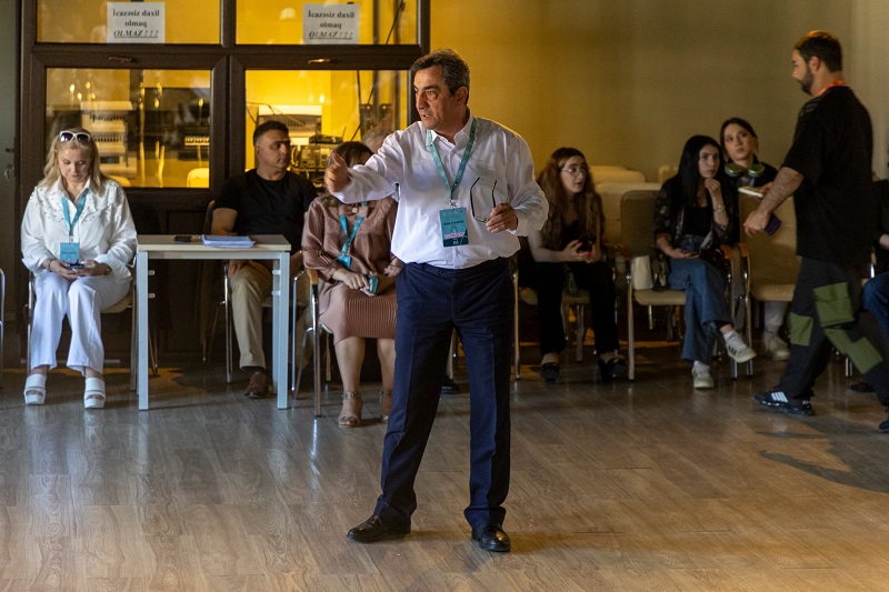 Daha sonra festival iştirakçıları ADMİU-nun müəllimi, dOM teatrının rəhbəri, rejissor Tərlan Rəsulovun təqdimatında “İnteraktiv teatr” mövzusunda seminar keçirilib.