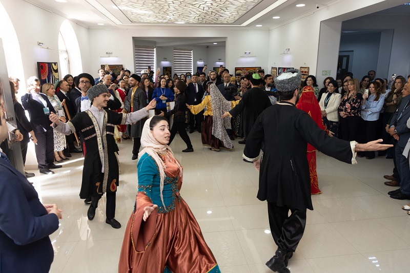 Qarşılanma mərasimindən sonra ADMİU təmsilçilərinin ifasında S.Şendilin “Qanlı Nigar” tamaşası nümayiş olunub.