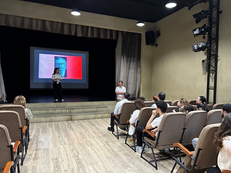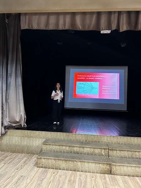 Azərbaycan Dövlət Mədəniyyət və İncəsənət Universitetində KATALİZATOR ArtHub və Tələbə Elmi Yaradıcılıq Cəmiyyətinin dəstəyi ilə həyata keçirilən “Docendo discimus” layihəsi çərçivəsində universitetin Teatrşünaslıq ixtisası üzrə sonuncu təhsil ilinin tələbəsi Fatimə Qurbanzadə tərəfindən “Parateatral formalar və teatr” mövzusunda təlim baş tutub.