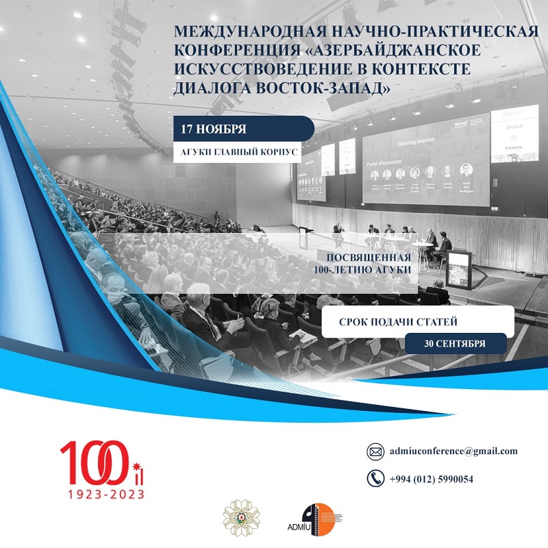 17 ноября 2023 года в Азербайджанском государственном университете культуры и искусств состоится Международная научно-практическая конференция «Азербайджанское искусствоведение в контексте диалога Восток-Запад», посвященная 100-летию АГУКИ.